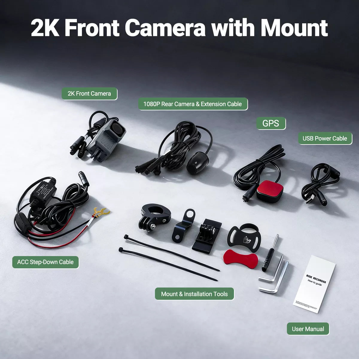 - Alimentación: 5V/1A. Compatible con USB estándar y cableado ACC de motocicleta para modo de estacionamiento.