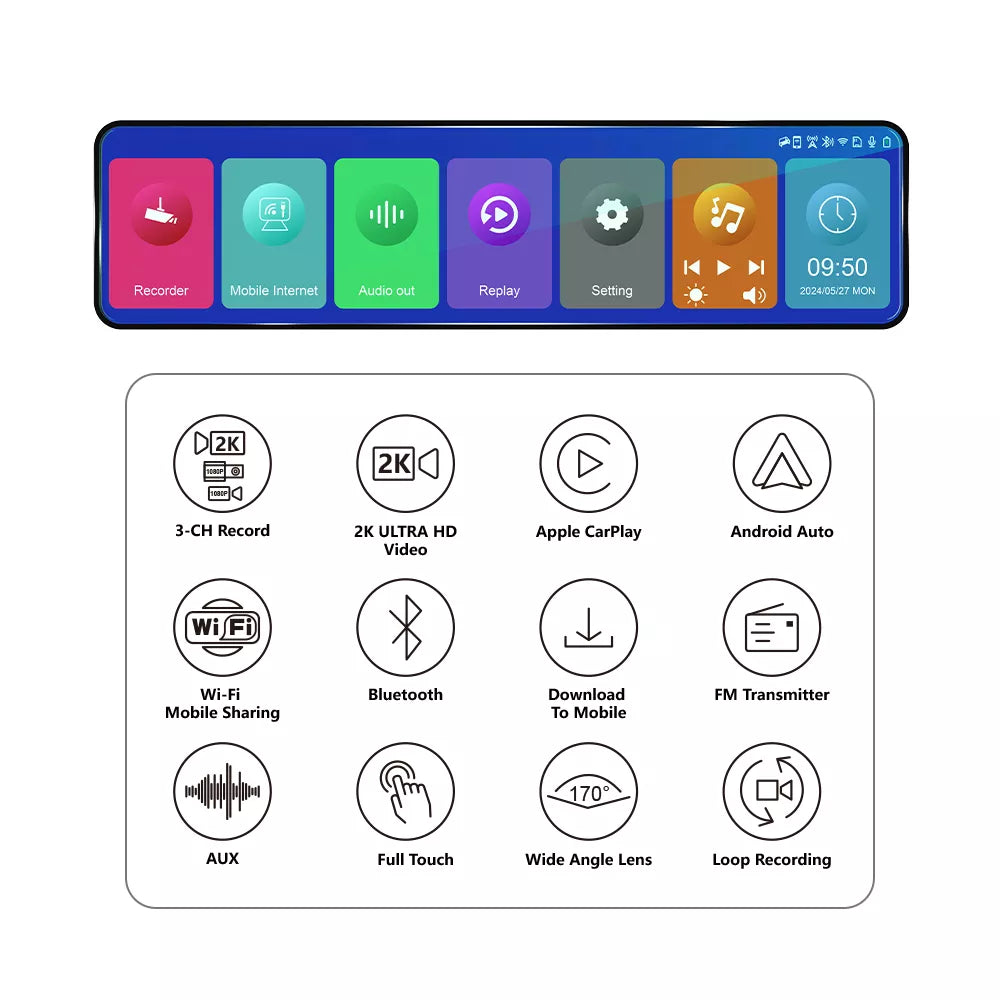 Aoocci P112 Grabadora Dashcam 4K/2K con GPS, Autoradio Portátil CarPlay/AA